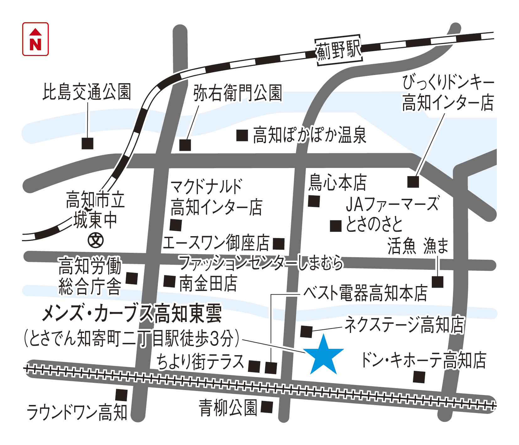 - 知寄町二丁目駅より徒歩6分/mac東雲店敷地内/mac東雲店西側にある別館にメンズ・カーブスがあります。