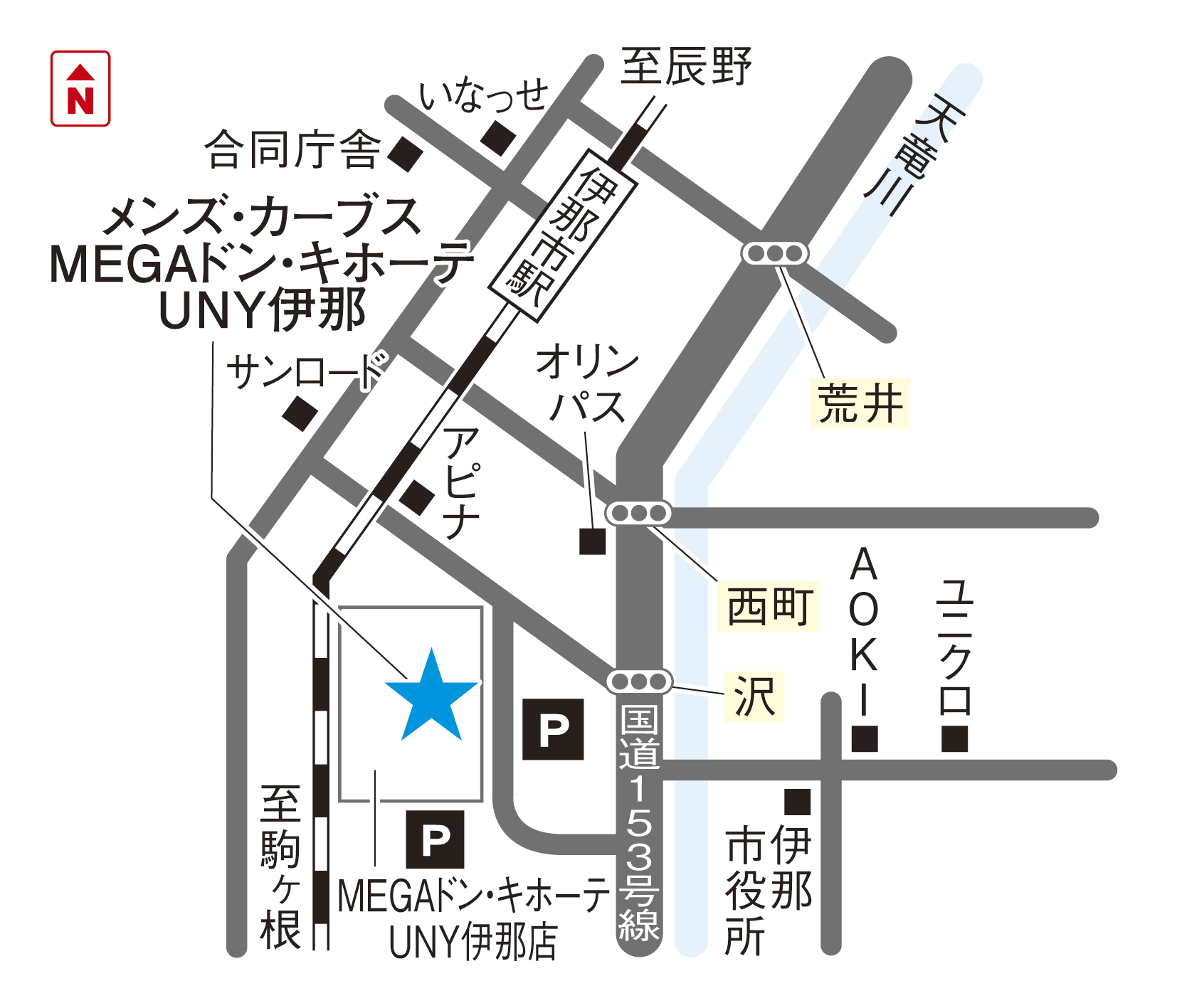 - 〒396-0026 長野県伊那市西町5182番地1 MEGAドン・キホーテUNY伊那 2F