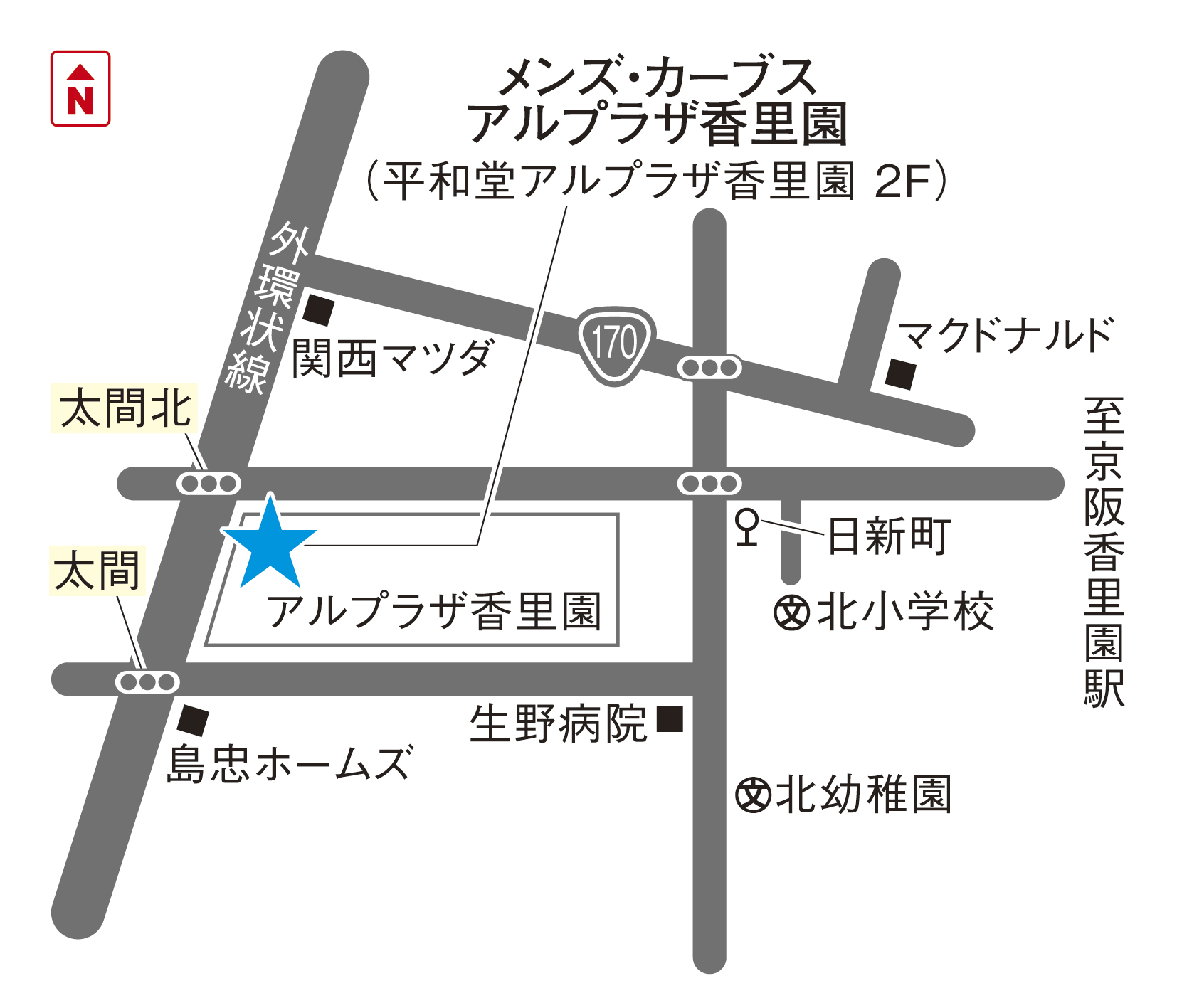 - 〒572-0028 大阪府寝屋川市日新町5-5 平和堂アルプラザ香里園 2F