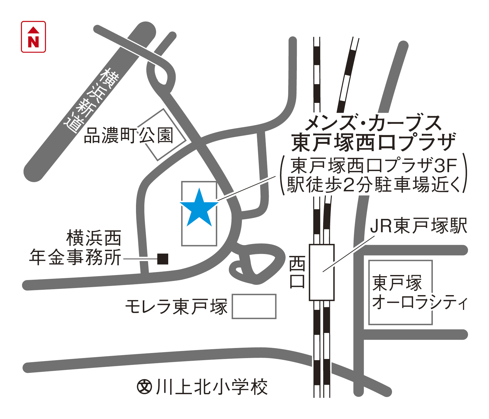 - JR横須賀線「東戸塚駅」西口徒歩4分/東戸塚西口プラザ3階/ 正面入り口のエレベーターで3階に上がり、左手に少し進むとメンズ・カーブスがあります。 お車でお越しの場合は、3階駐車場側入口入って右手にメンズ・カーブスがあります。