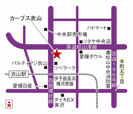 松山環状線、中央2丁目交差点の乾仏具店松山本店さんの隣、ドコモショップ松山衣山店さん2階