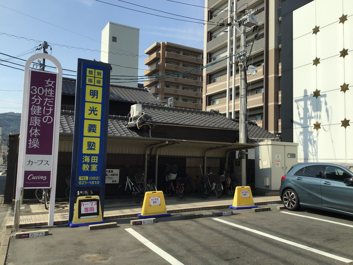 建物に向かって左手前の3台分がカーブスの駐車場です!自転車でお越しの方は駐輪場をご利用ください。 -