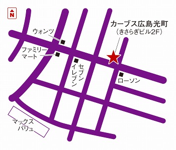 JR広島駅新幹線口方面から真っ直ぐ、光町ウォンツの角を右に曲がり進んでローソンがあり、左手きさらぎビル2階がカーブスです