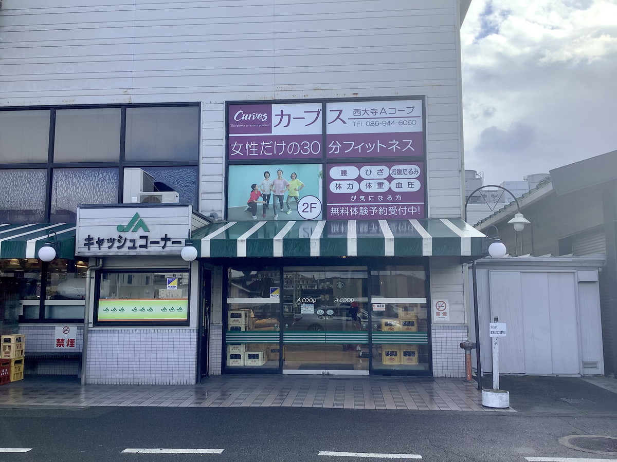 JR赤穂線西大寺駅より車で5分、味菜館Aコープ正面入り口入って右側、酒屋さん横の階段登って左側通路をまっすぐ進むと右側にございます。化粧品店PIAさん隣です。
