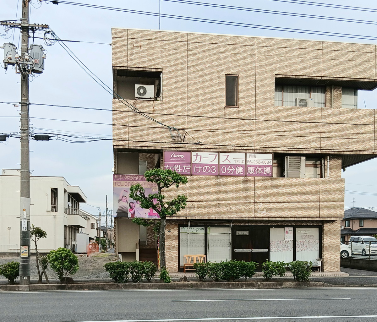 駐車場はビルの2つ隣にあります、カーブスの看板がかかっているところにあります。