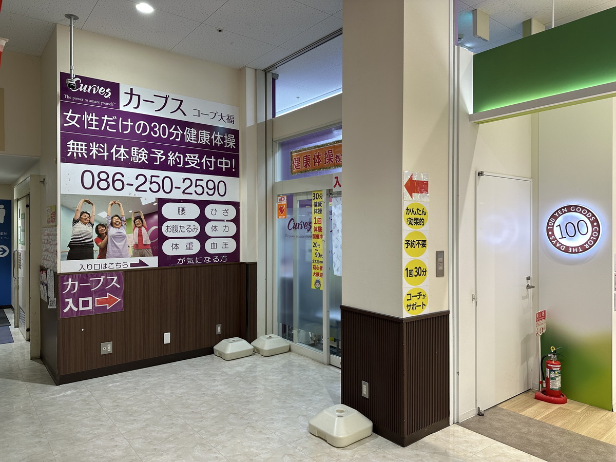 スーパーコープ大福店さん入り口から一階セリアさん横