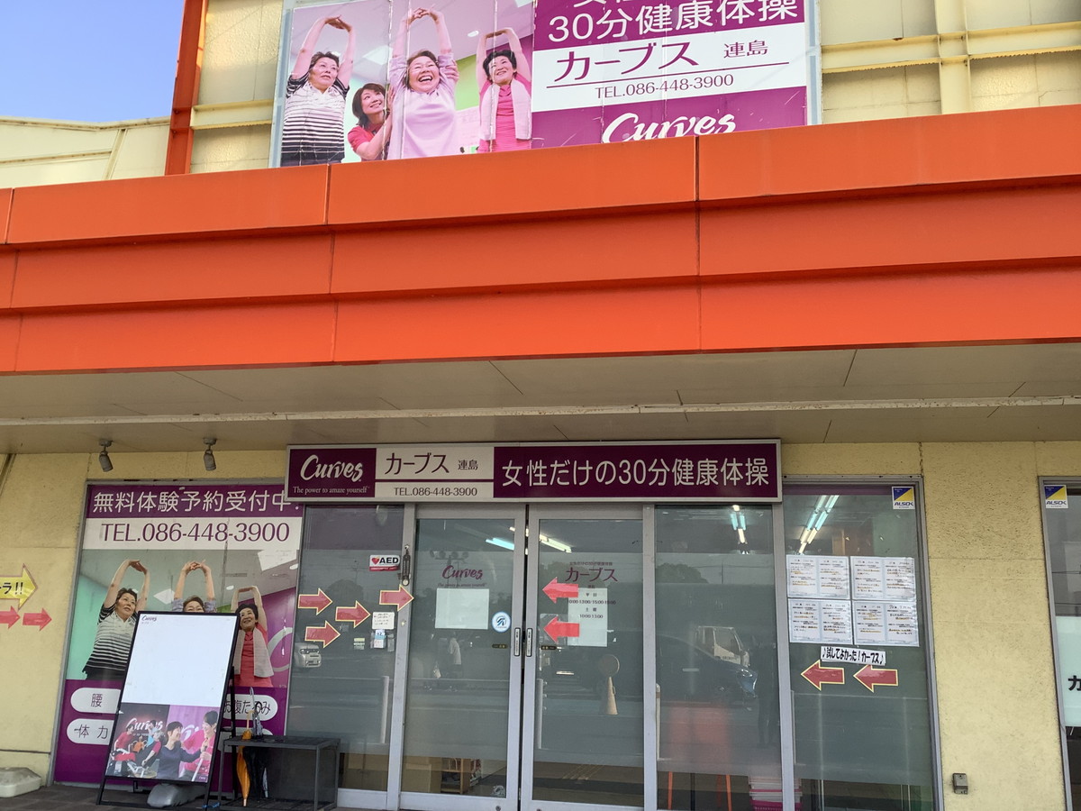 左手にあるザ・ビッグ連島店さんの敷地内にカーブス連島店があります。