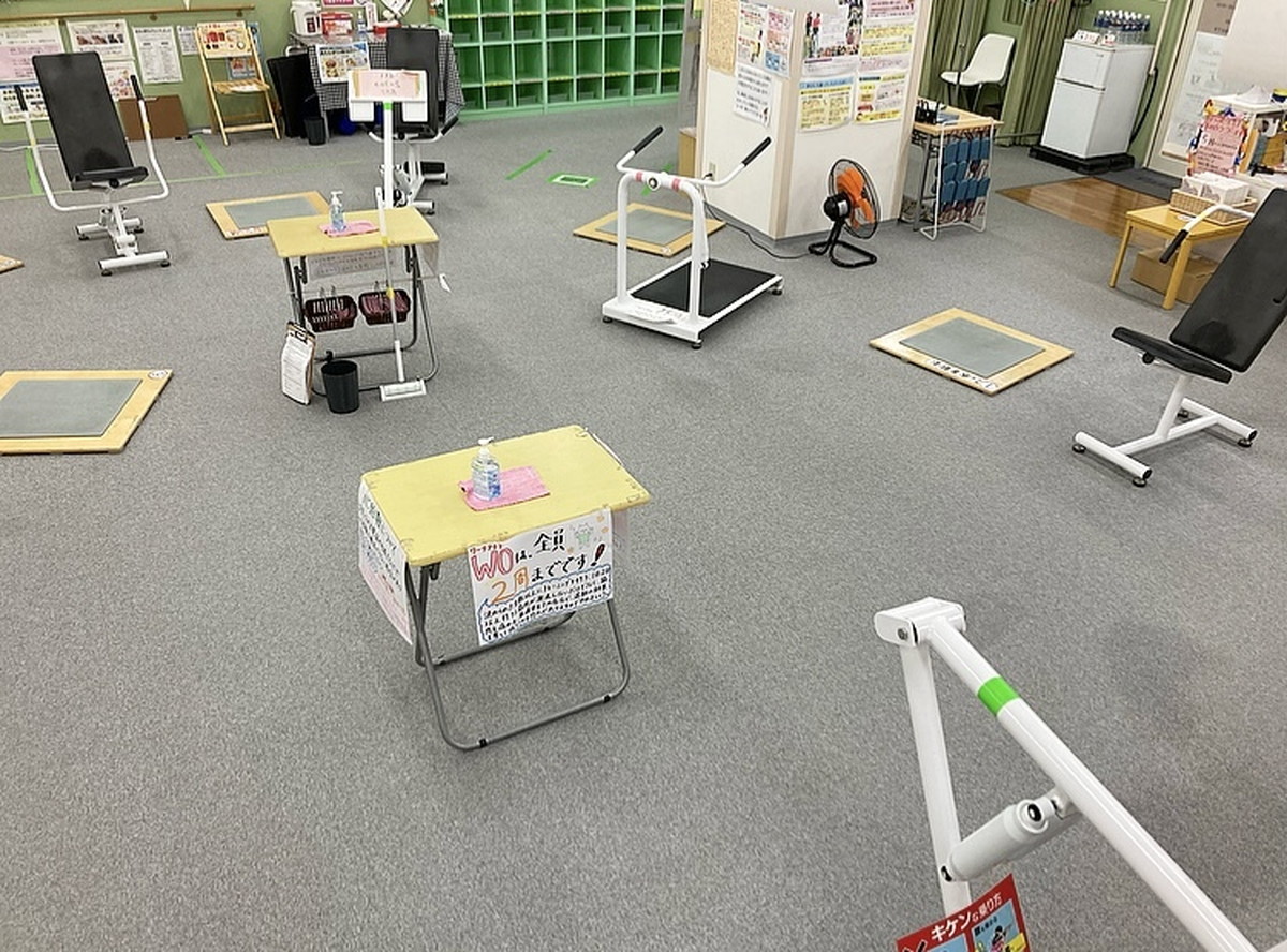 運動中メンバーさん同士が1m以上離れるようマシンの間隔を空け、30分に一度換気を行っています!