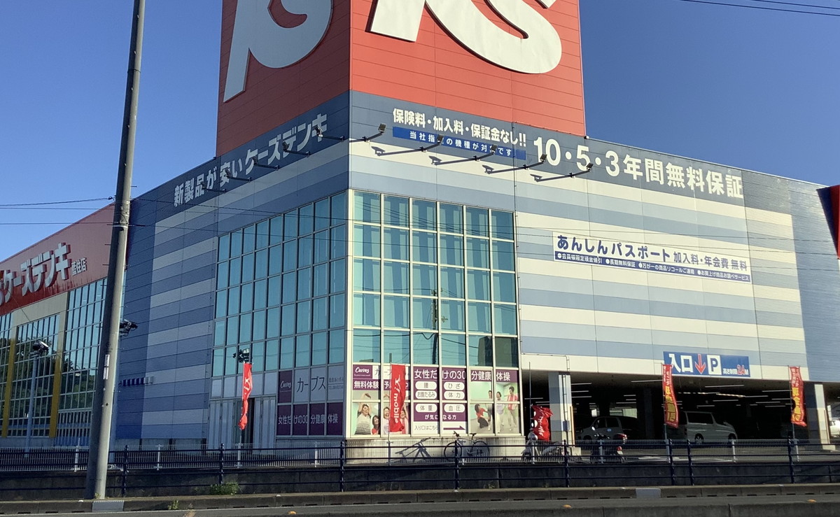 ケーズデンキの1階なのでお車の方は雨の日もぬれずに入店していただけます。