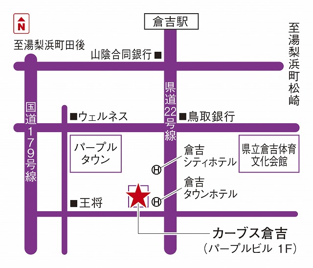 ・シティホテル様向かいのパープルビル1階がカーブス倉吉です