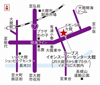 イオンスーパーセンター大館店正面入り口を直進し、セリアさんを右に曲がり直進。