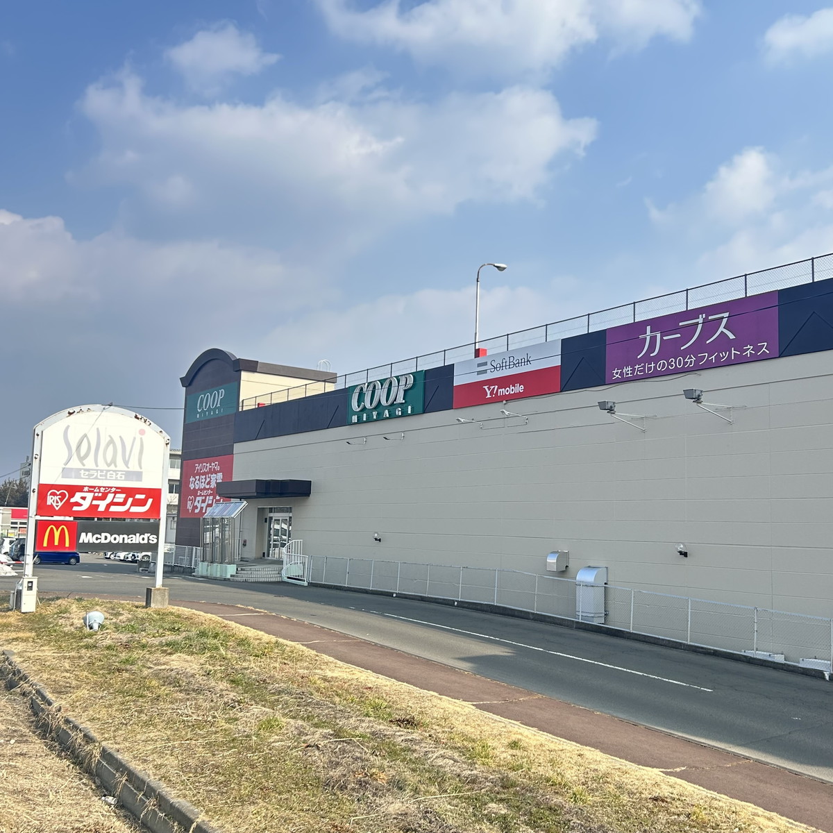 みやぎ生協白石店さん正面玄関入り口からエスカレーターで2階に行き、ソフトバンクセラビ白石さん左折。ダイソーセラビ白石さんを通り、突き当たりがカーブス