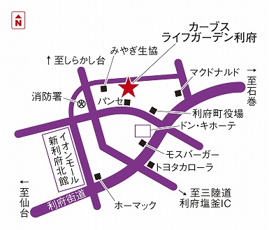 利府役場前停留所で下車し、みやぎ生協利府店さん敷地内、パンセさんの隣です。
