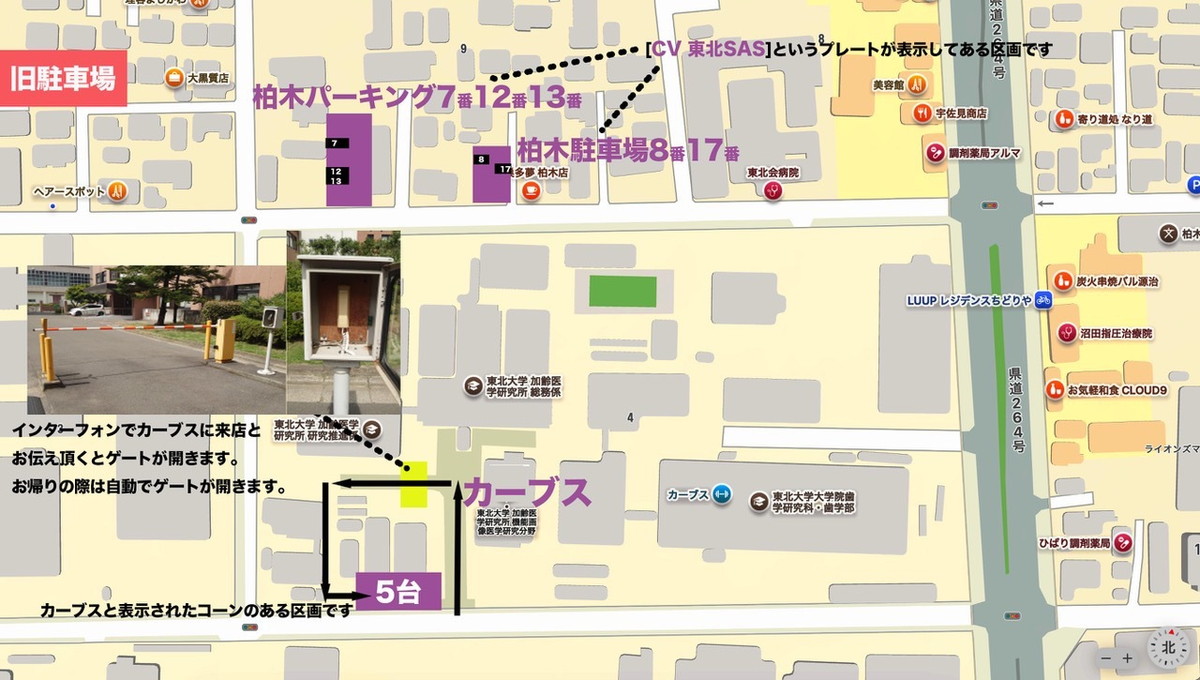 加齢医学研究所近隣バス停(東北大学病院前、歯学部・東北会病院前、星稜町)下車、徒歩約5分。