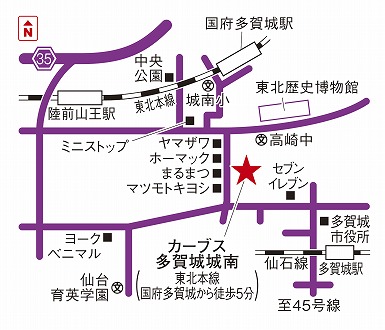JR東北本線 国府多賀城駅南口から高崎方面(ヤマザワ多賀城店様方面)に直進し徒歩5分