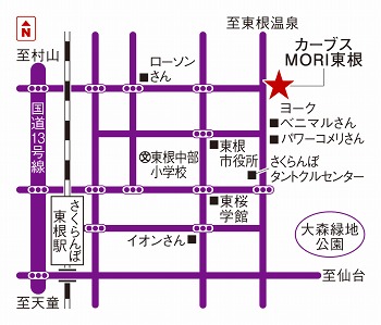 ヨークベニマル東根店となり(北側)にあります。女性に優しい広い駐車場も完備。