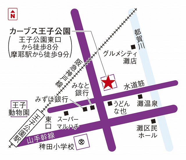 王子公園東口から徒歩8分。