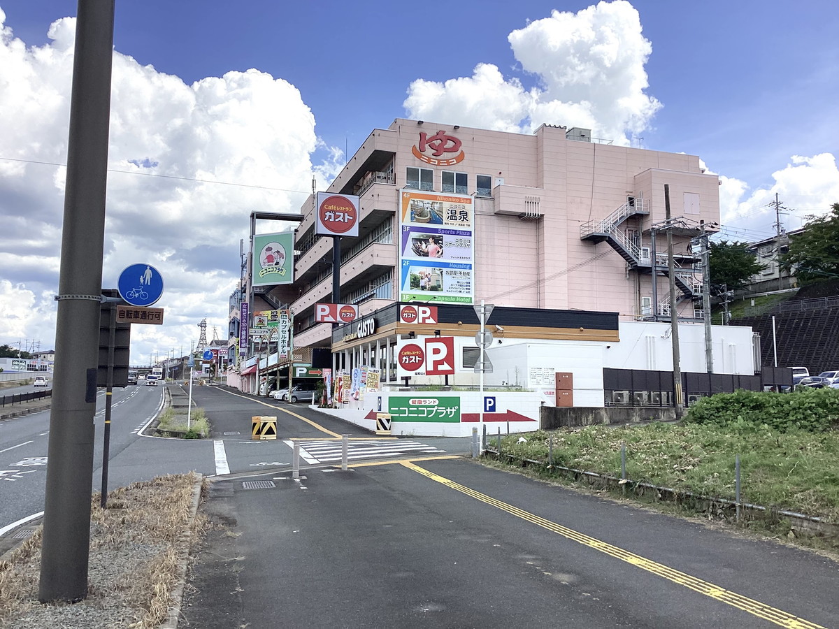 南口を出て直進し、2つ目の号を渡って左折、60mほど進むと右手にあるピンクの建物ニコニコプラザの2階です。