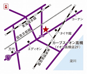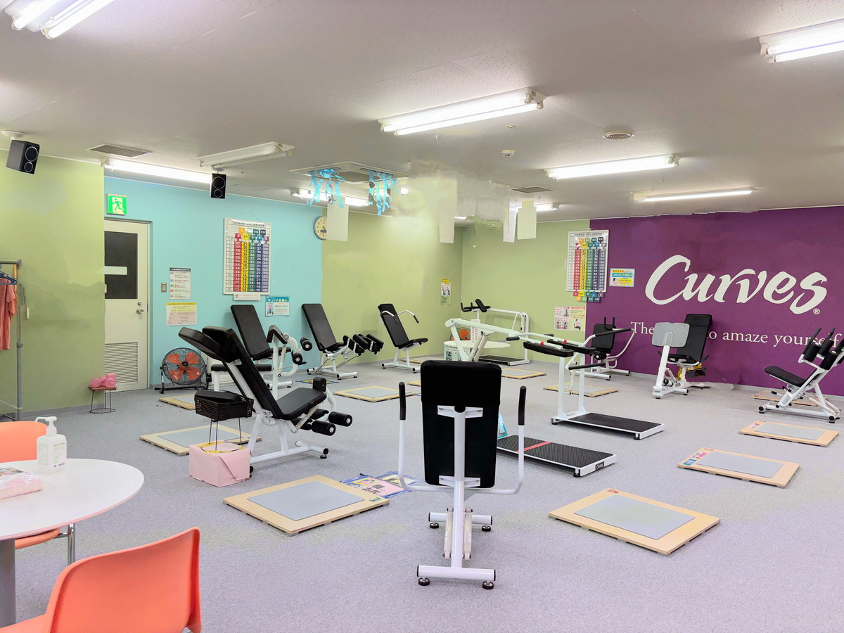 イオン高槻店のエスカレーターまたはエレベーターにて2階に行き、紳士服売り場さんの奥がカーブスです。