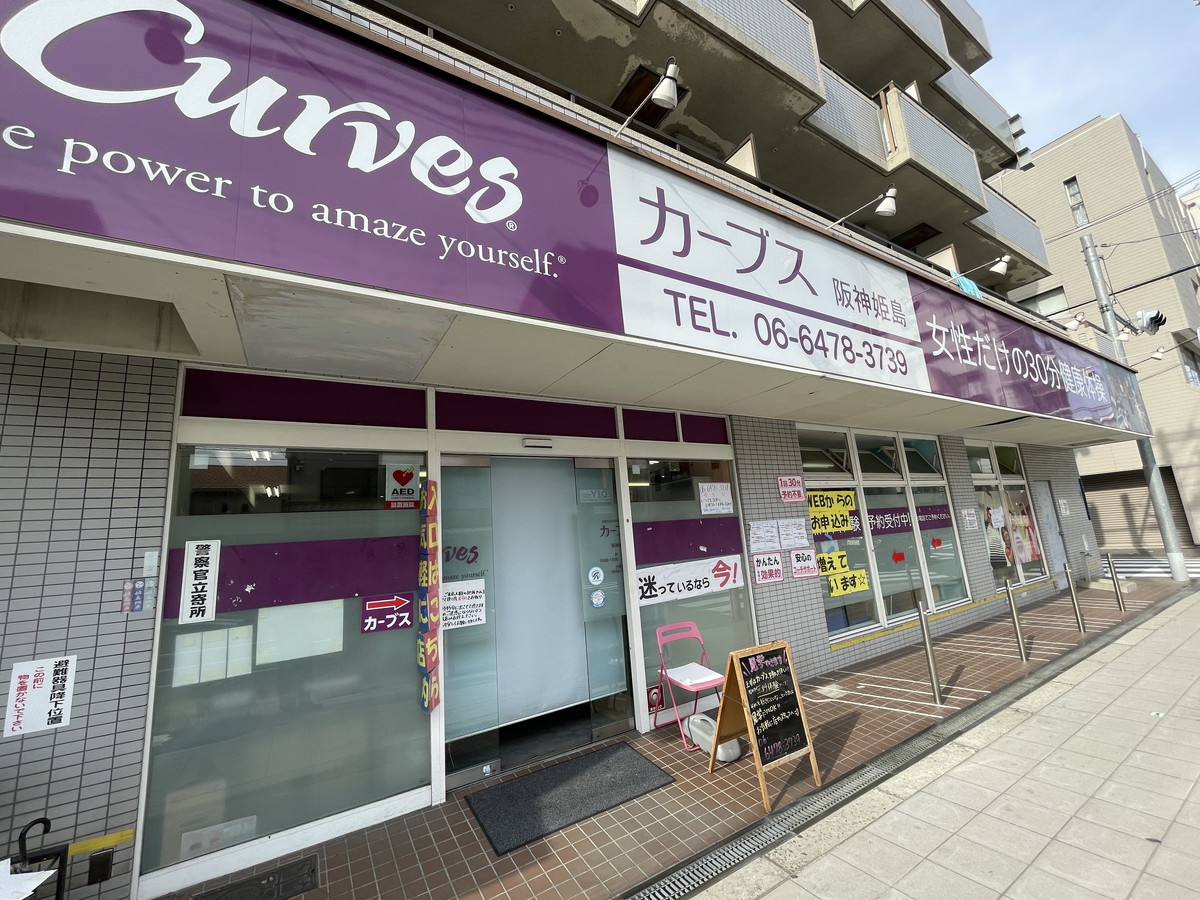ダイソーさんを右手に直進した先にカーブス阪神姫島電話です。