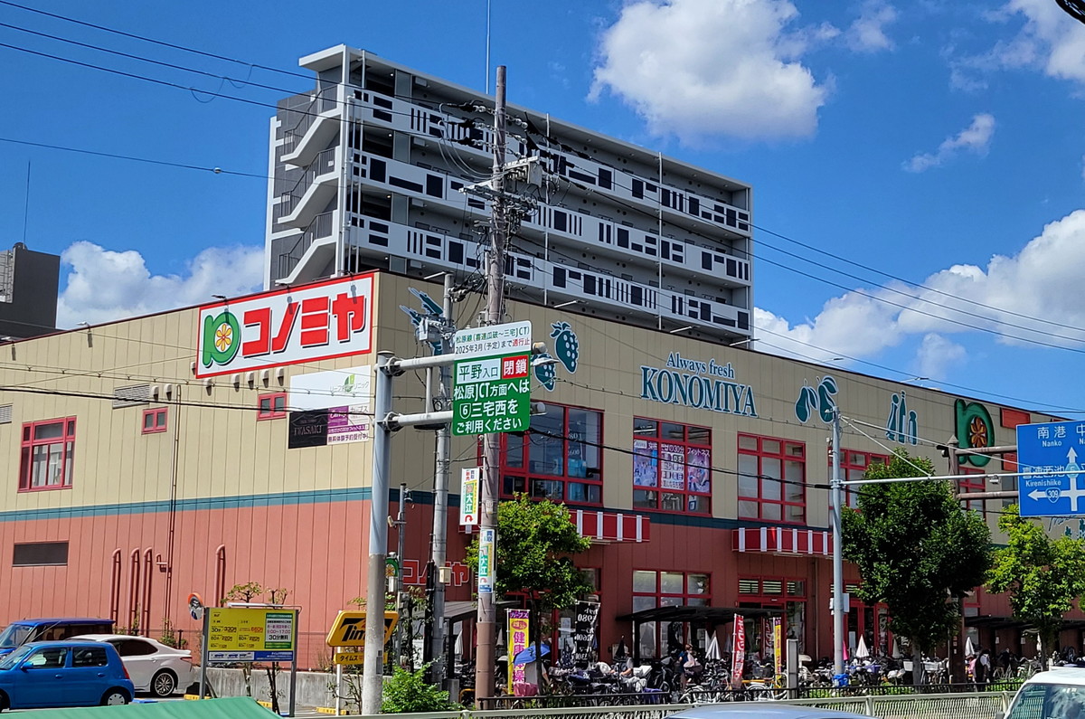 地下鉄谷町線平野駅の6番出口を出て直進、1分ほど歩いた左側に見えるコノミヤというスーパーの2階です!! -