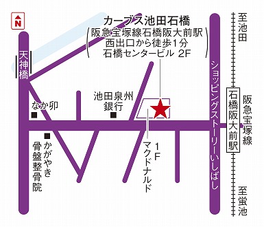 阪急宝塚線 石橋阪大前駅 西口改札口を出て2分。マクドナルドとさん同じビルの2階です♪