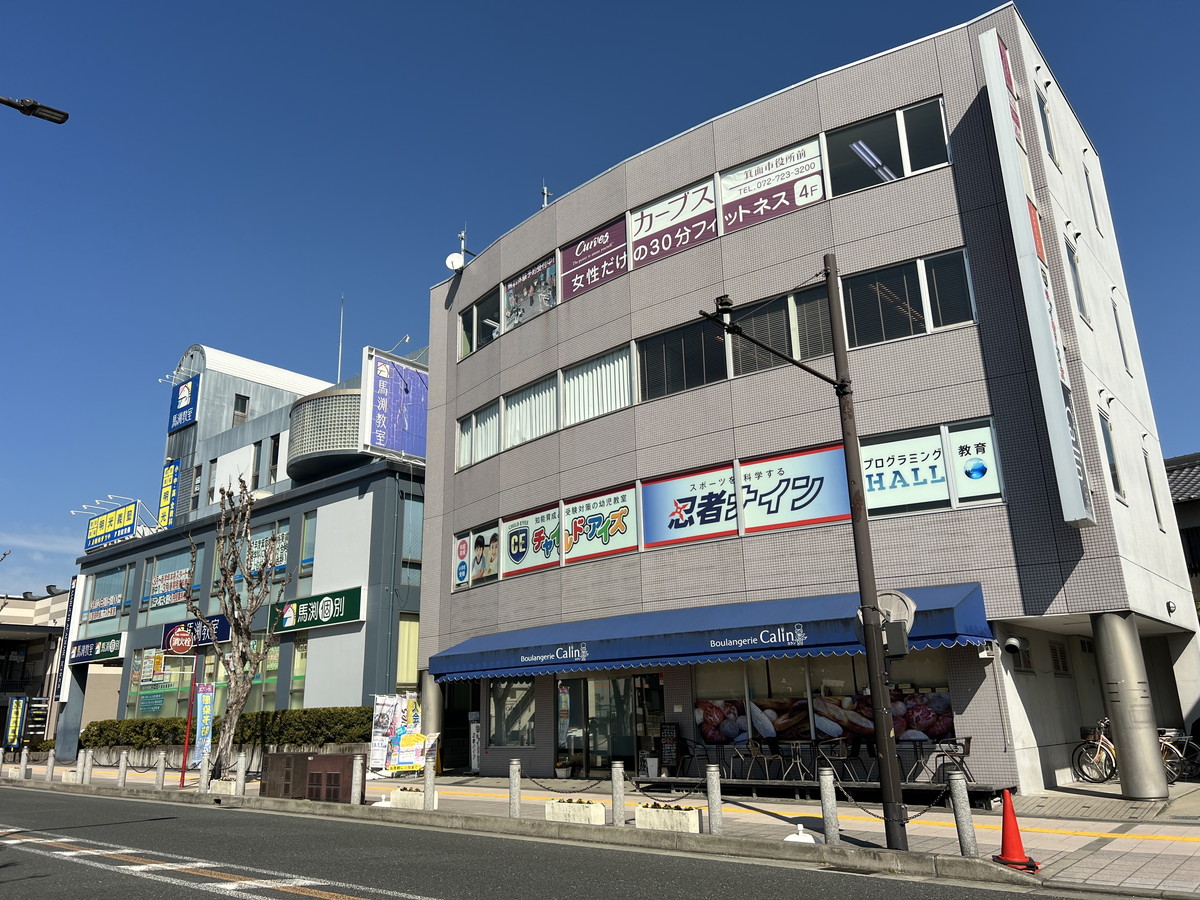 箕面市役所を箕面駅方面に進むと右手にパン屋さんが入ってるビルがあり、そのビルの4階です。