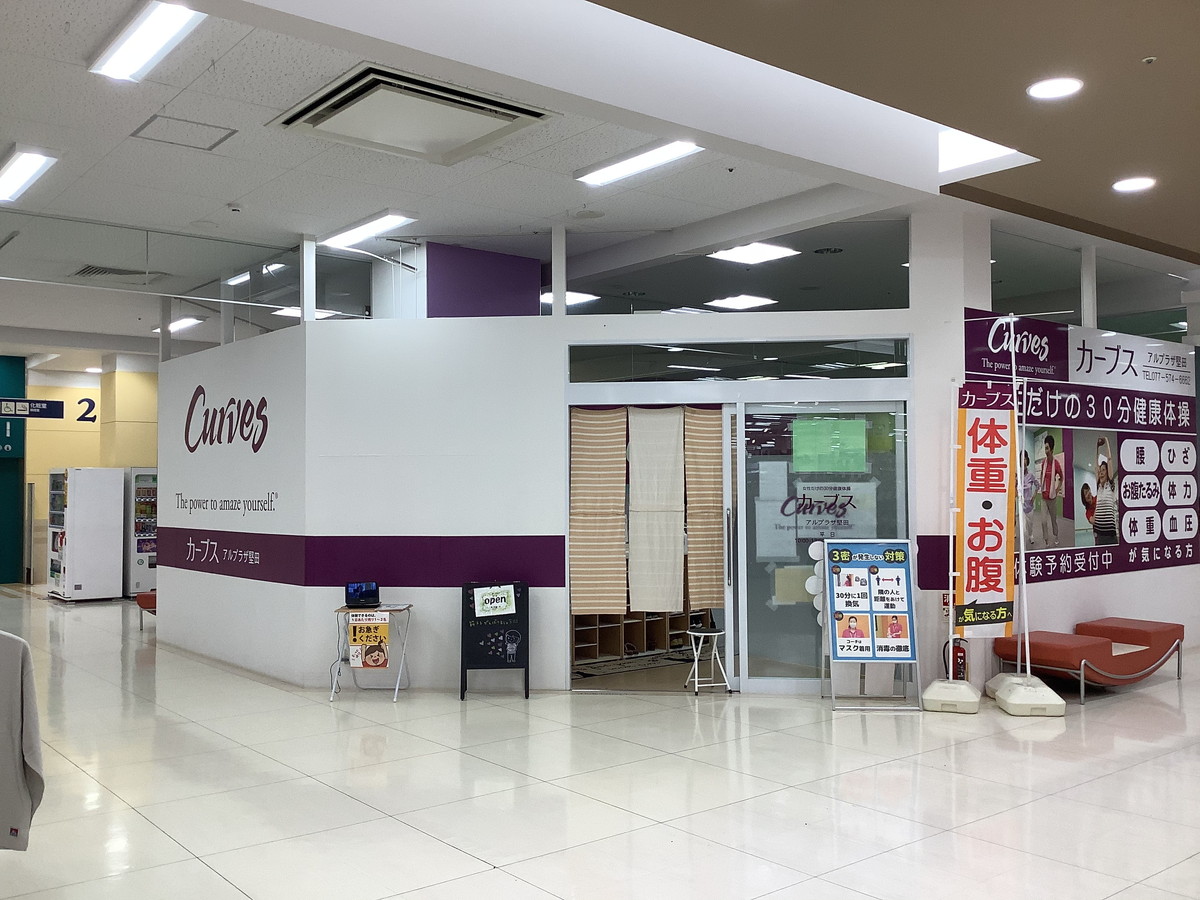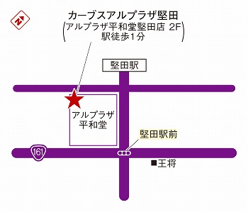 アルプラザ堅田点の正面入り口から入り右手の緑色のエレベーターで2階に降りてすぐ正面少し進むと左手に入り口あります。メンズ服売場と婦人肌着売場の向かいにあります。