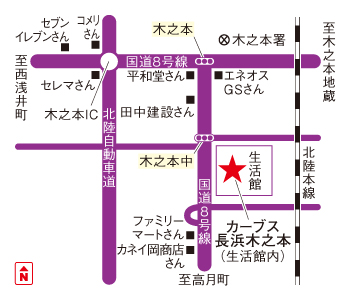 湖国バス 金居原線・木之本田村線の停留所 廣瀬西口を降りて北に徒歩1分。