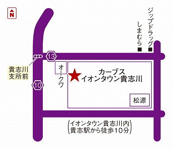 貴志川町河南図書館交差点東へ。イオンタウン貴志川ショッピングセンター内。もってけDOROBO!!さんの右隣がカーブスイオンタウン貴志川店です。