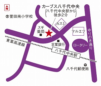 八千代中央駅改札を出て左に直進し、マルエツさんを左に曲がります。通りに出たら右に曲がります。左手にあるユウセイモール3階にカーブスがあります。