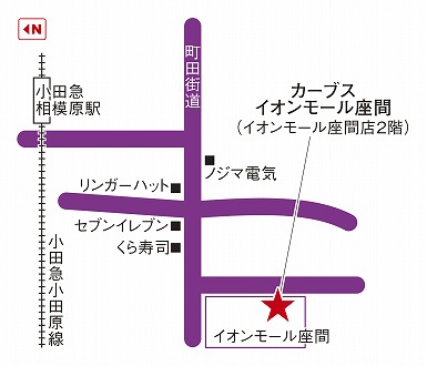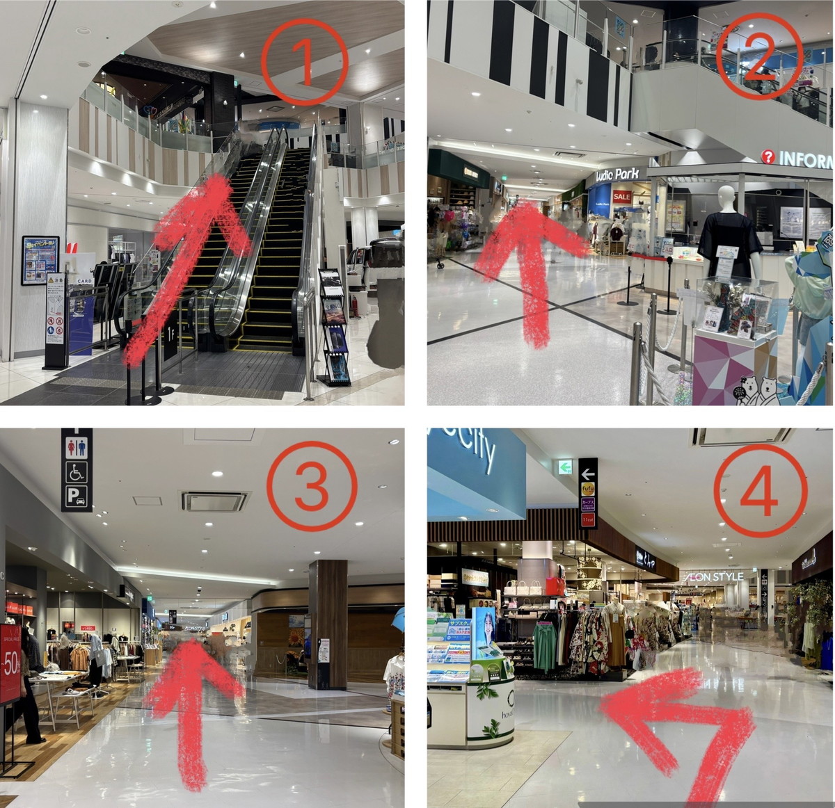 イオンモール座間、北入口またはバスロータリー入口からエスカレーターで2階に。
