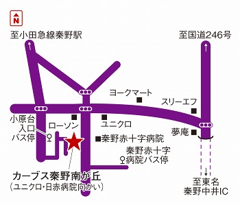 秦野駅から徒歩18分。小原台入口バス停から徒歩5分。日赤バス停から7分。