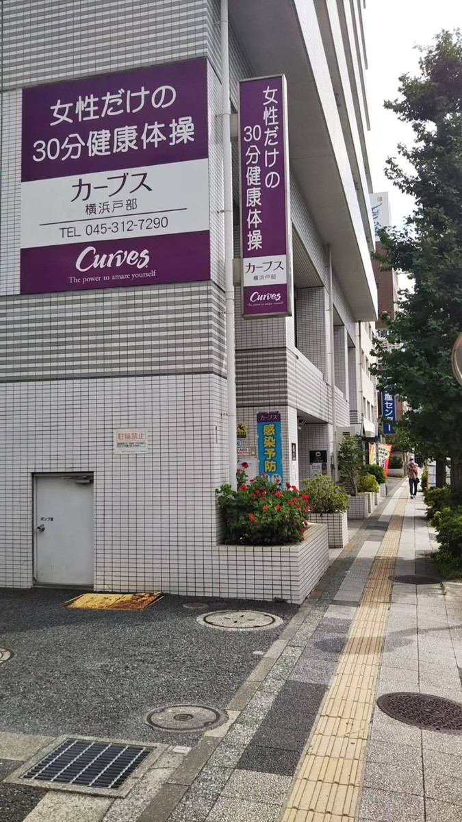 戸部駅出口を出てすぐの国道1号線の横断歩道を渡り、右側に進みます。戸部警察署前の交差点も直進、コインパーキング隣のグレーのマンション2階がカーブス横浜戸部店です。