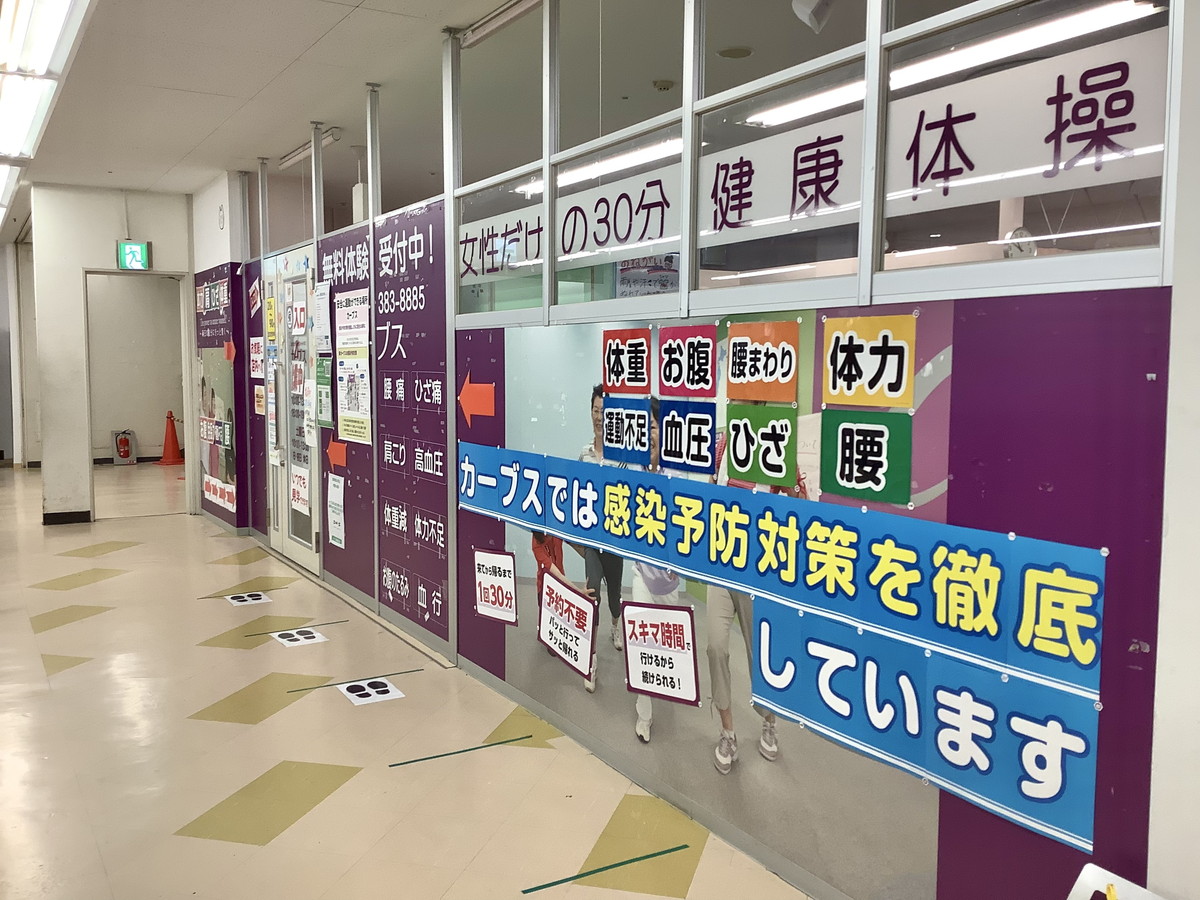 南口を出て左に道なりに進み、大六天通りに出て左折、道なりに進むと左手にあるマルエツさんの3階、ダイソーさんの隣がカーブスです。