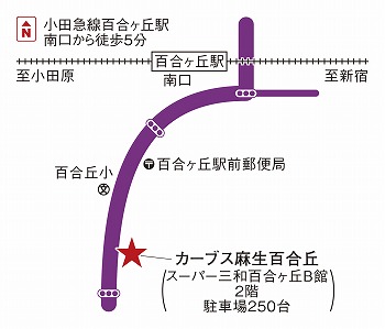 小田急百合ヶ丘駅より徒歩5分 三和百合ヶ丘店B館2階 1階は西松屋、ココカラファインです