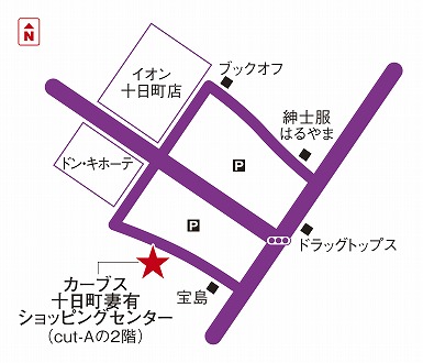 高山太子堂線 十日町妻有ショッピングセンター敷地内のドン・キホーテ様側、ブックス平沢様、カットA様の間に入り口があり、階段を登って2階がカーブス十日町妻有ショッピングセンターです。