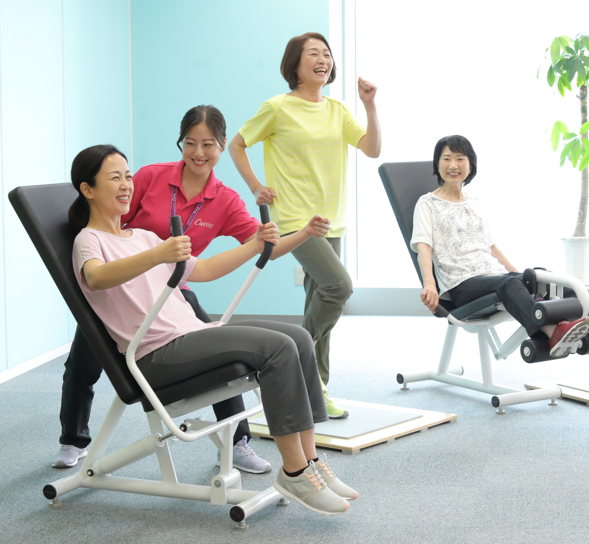 初回はお体チェックをするので、筋肉量も分かります!カーブスの機械を使った運動では、丁寧にサポートいたします。ご安心ください。