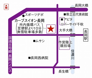 イオン長岡店様1階、食料品売り場入口入って左、フードコートの隣です。