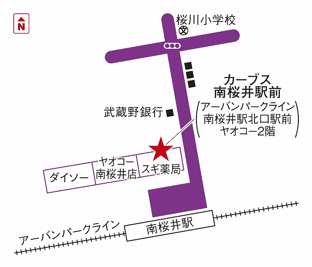 南桜井駅北口ヤオコーさん内スギ薬局さん2階にあります。 -