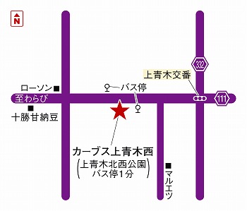 ローソンの斜め前、天気の良い日はのぼりが沢山立っています。駐車場も完備、お車の方も来店しやすいです。