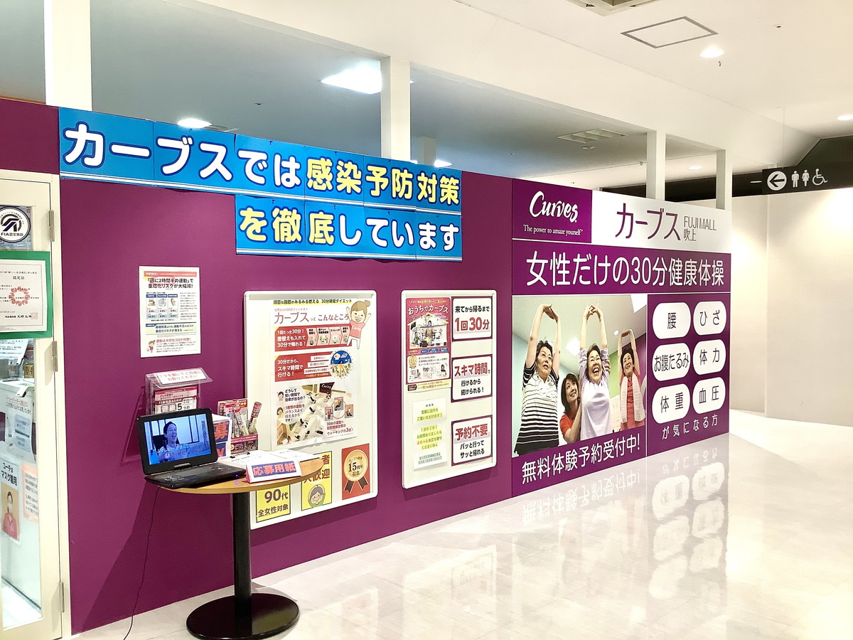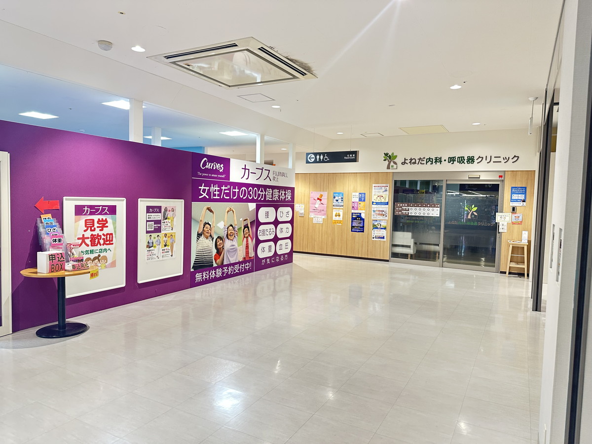 FUJIMALL吹上2階の駿河屋さんとよねだ内科・呼吸器クリニックさんの間にあります。お車の方は3階立体駐車場からエスカレーターにて降りてきていただくと目の前にございます。