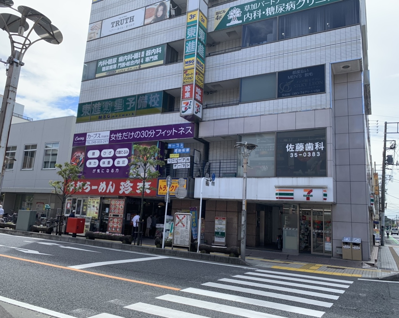 ロータリー正面のセブンイレブンさんの隣のビル、珍来さんの2階です