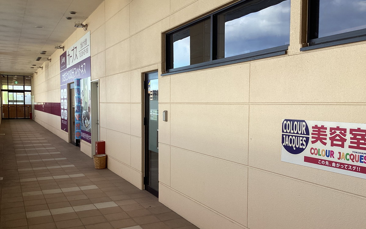 かましんカルナ大曽店北口から、エスカレーターで2階に行き、正面自動ドアをでてつきあたり右
