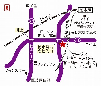 栃木駅南口より車で5分。ローソン栃木川連店の斜め向かいです。