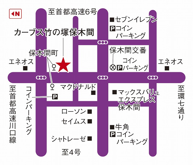 住所は保木間3丁目になります。近くの交差点は足立成和銀行花畑支店とMaxバリュとマクドナルドがございます♪紫の看板が目印です♪ -
