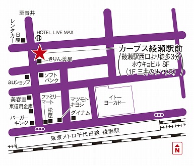 東京メトロ千代田線綾瀬駅西口バス通りを徒歩3分。1階が三井のリハウスさんのビルの8階です。最上階なので景色も良く明るくて爽やかなお店です。