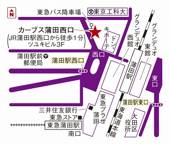 JR蒲田西口駅西口、東急蒲田駅南口から徒歩3分。東急バス降車場から徒歩1分。日本海(お寿司)さんのあるビルの3階。しんクリニックさんの大きな看板が目印です。 -