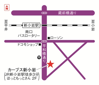 平和橋通りを直進した先のほっともっとさんの2階がカーブス新小岩です。