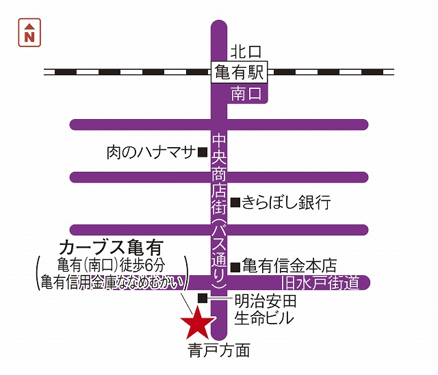 亀有駅南口を出て右に曲がり交番を通り過ぎます。